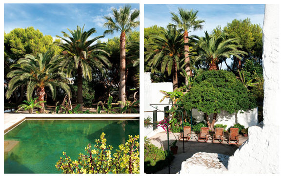 Llegamos a un jardín de morir en el que los ojos se van a una piscina de agua verdosa debido a toda la vegetación que la rodea. Un lugar perfecto para perderse, respirar y cargar las pilas para volver a un trabajo tan creativo como el de diseñadora. (Recuerda la importancia de introducir agua en la decoración aquí)