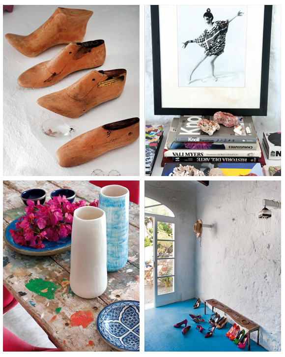 Como cabía esperar, los elementos referentes al calzado están muy presentes. En las fotografías podemos ver hormas antigüas o zapatos diseñados por la dueña de la casa.