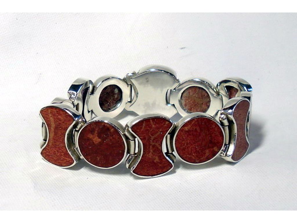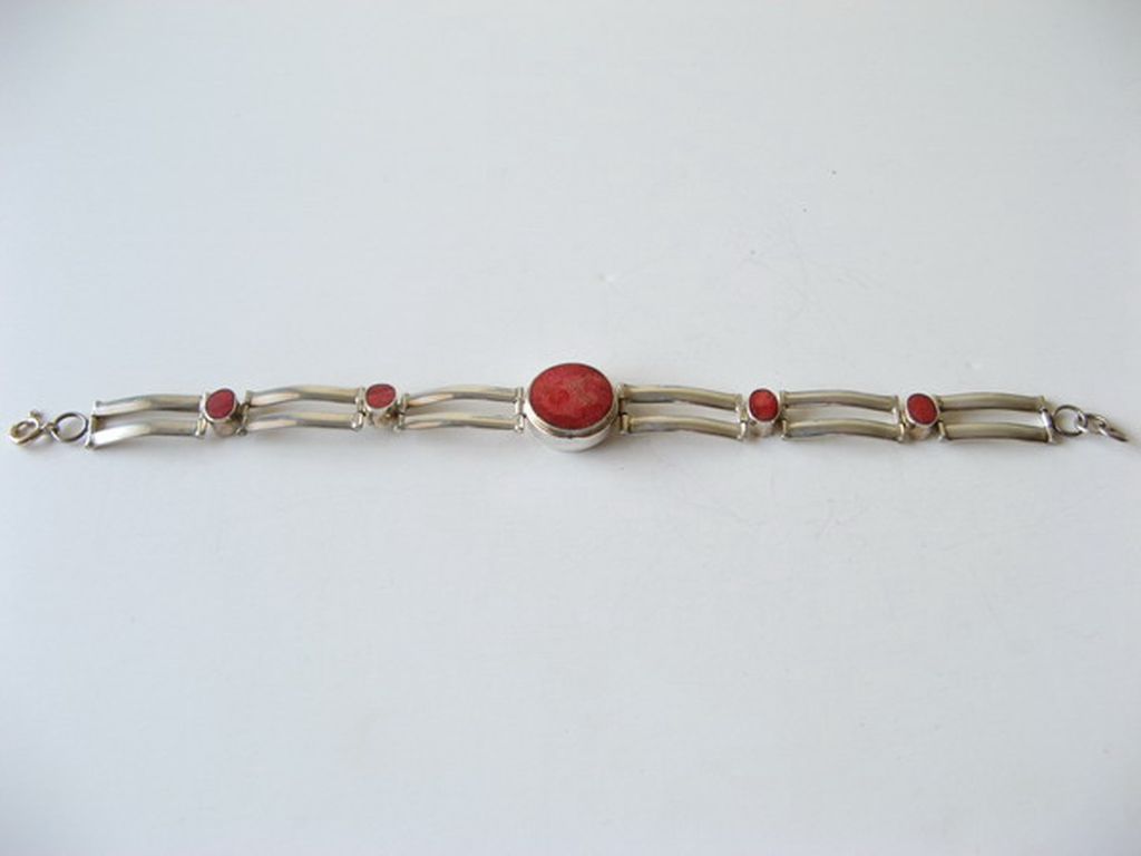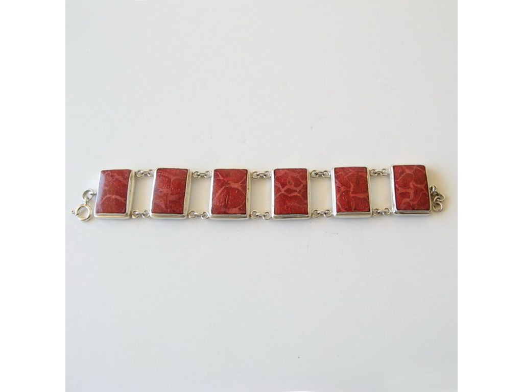 Pulsera de plata y coral rojo