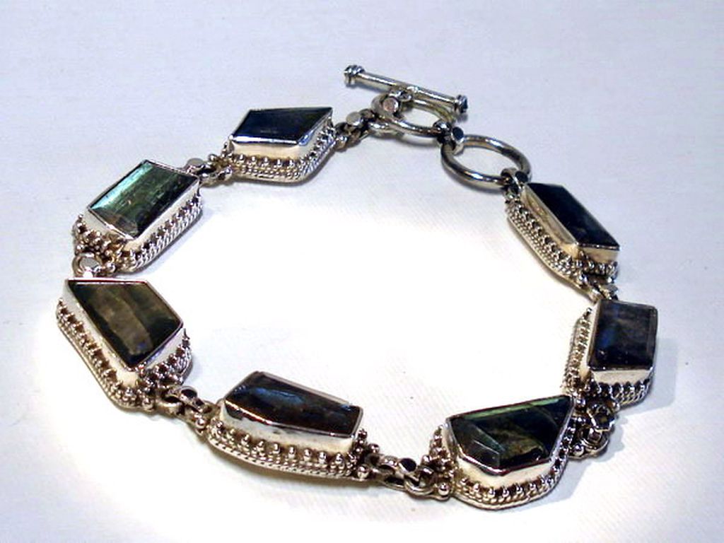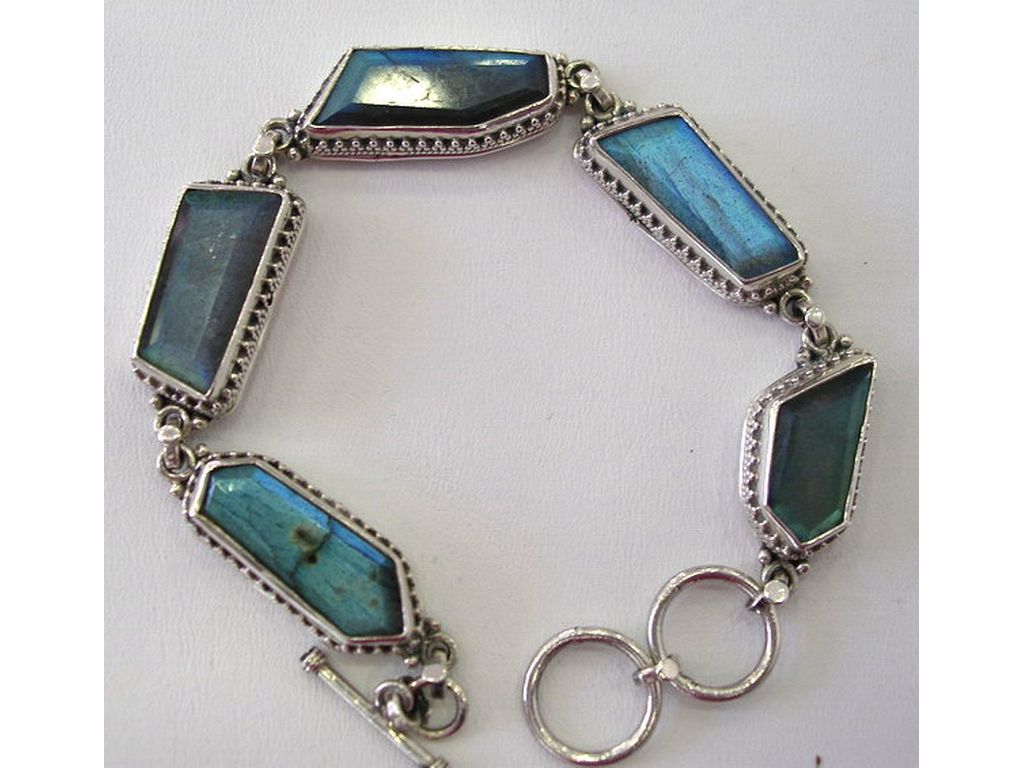 Pulsera de plata y labradorita facetada