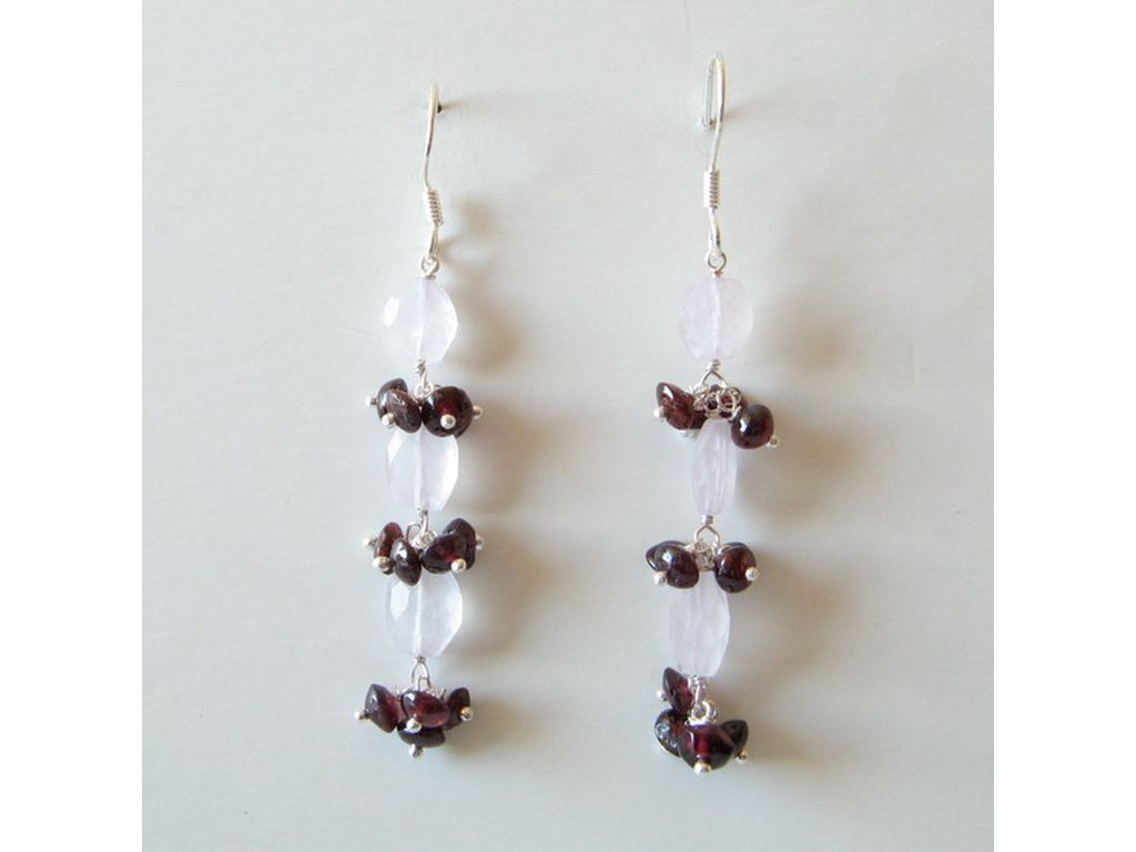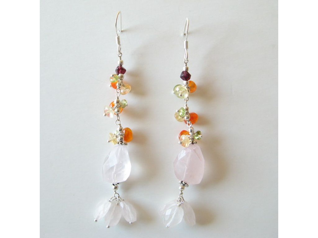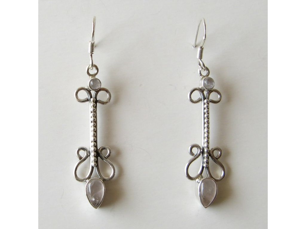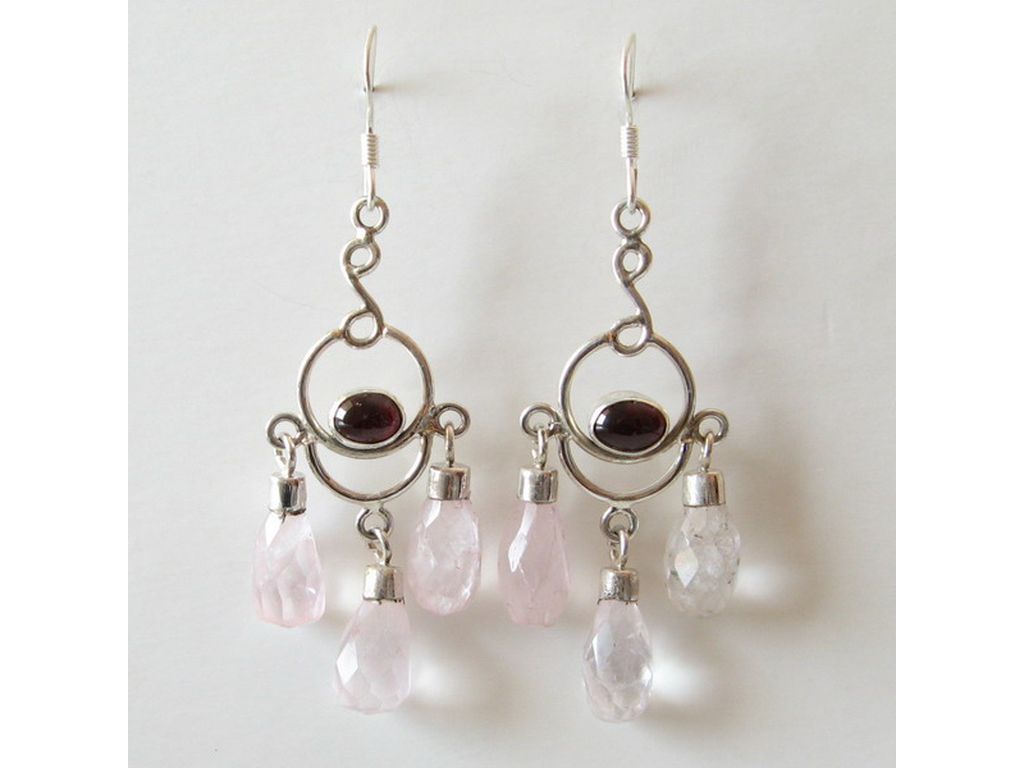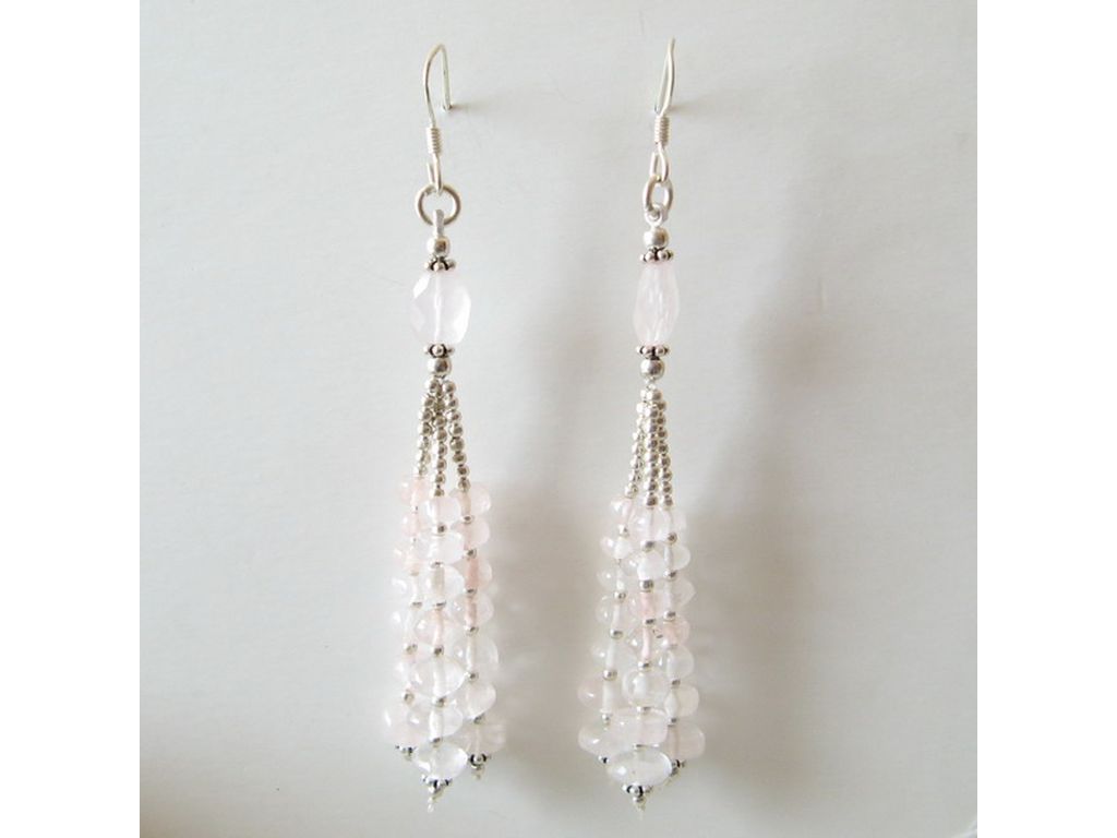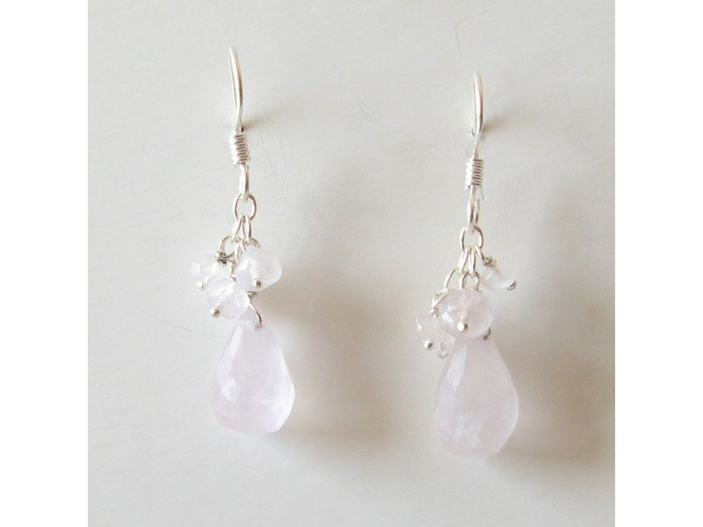 Pendiente de plata y cuarzo rosa
