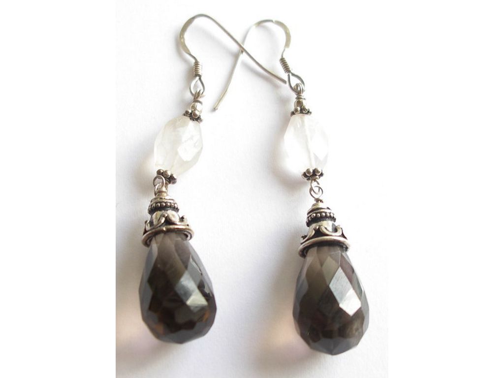 Pendientes de plata y cuarzo ahumado