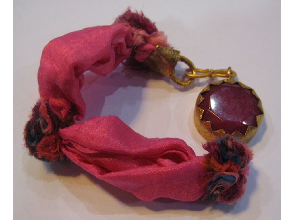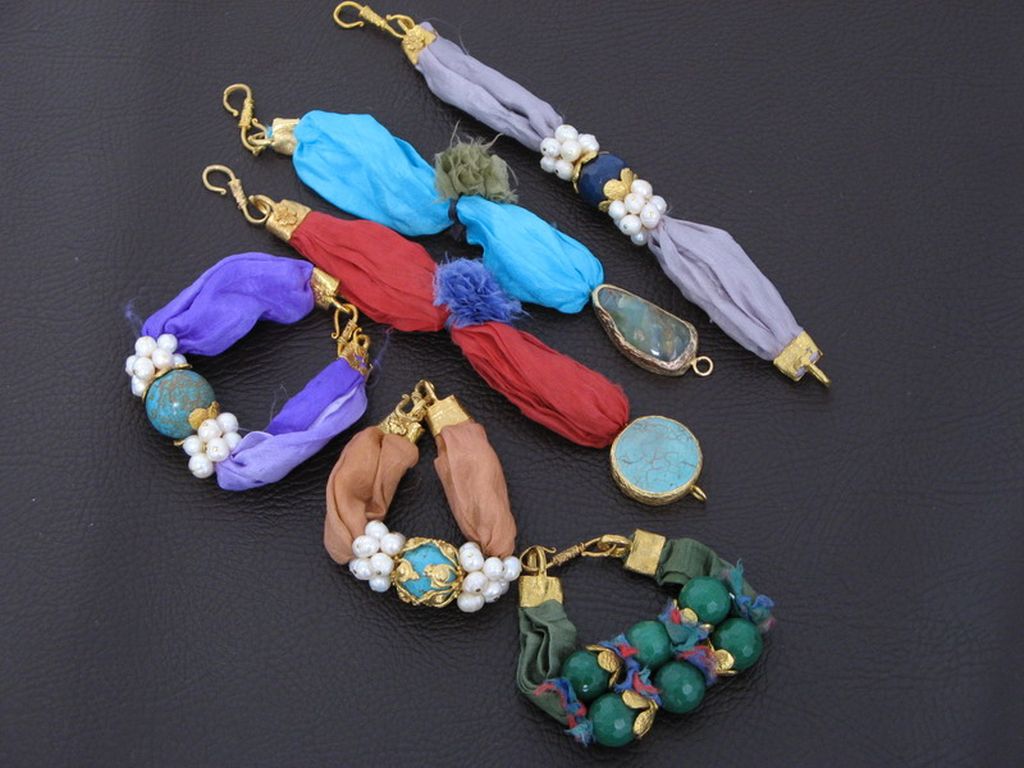 Pulsera plata bañada en oro seda piedra