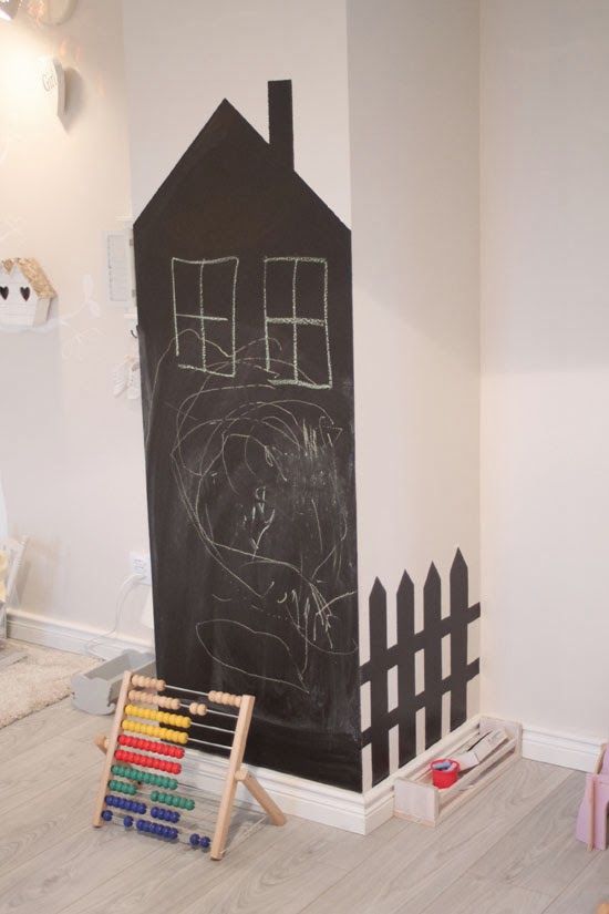 Una pared de pizarra es fácil de colocar y da mucho juego; sobre todo en la cocina donde se puede apuntar la lista de la compra o las películas que os apetece ver en el cine.