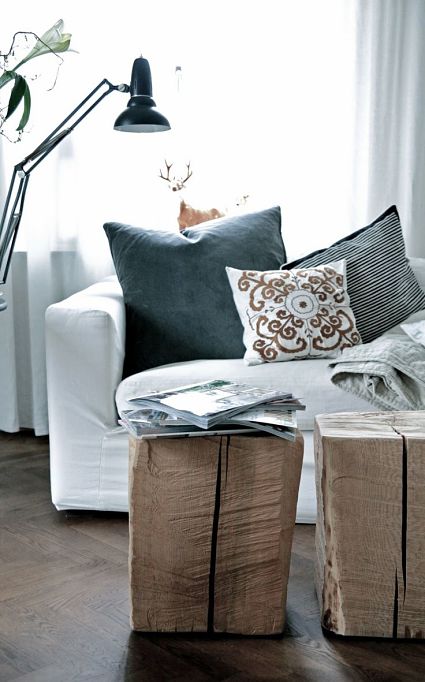 Nos encantan estas recopilaciones, siempre se encuentran propuestas muy interesantes, las mesas auxiliares hechas con troncos son preciosas.
