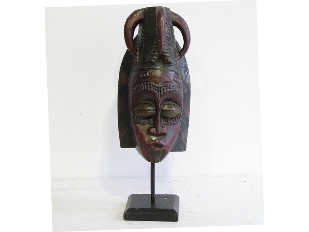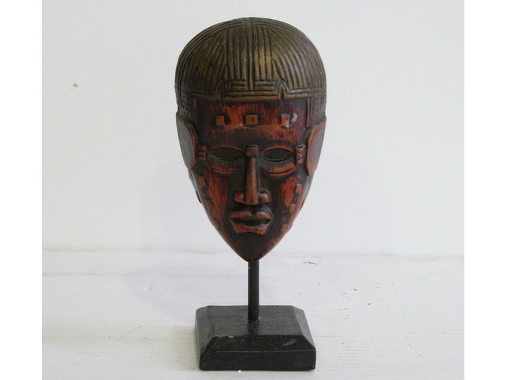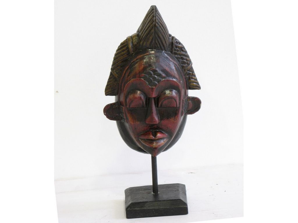 Mascara de madera tribal con pie pequeñ