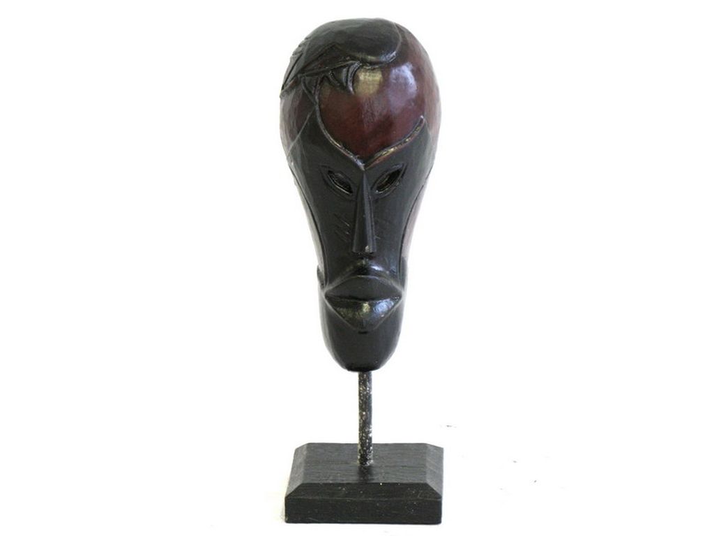 Mascara de madera tribal con pie pequeñ