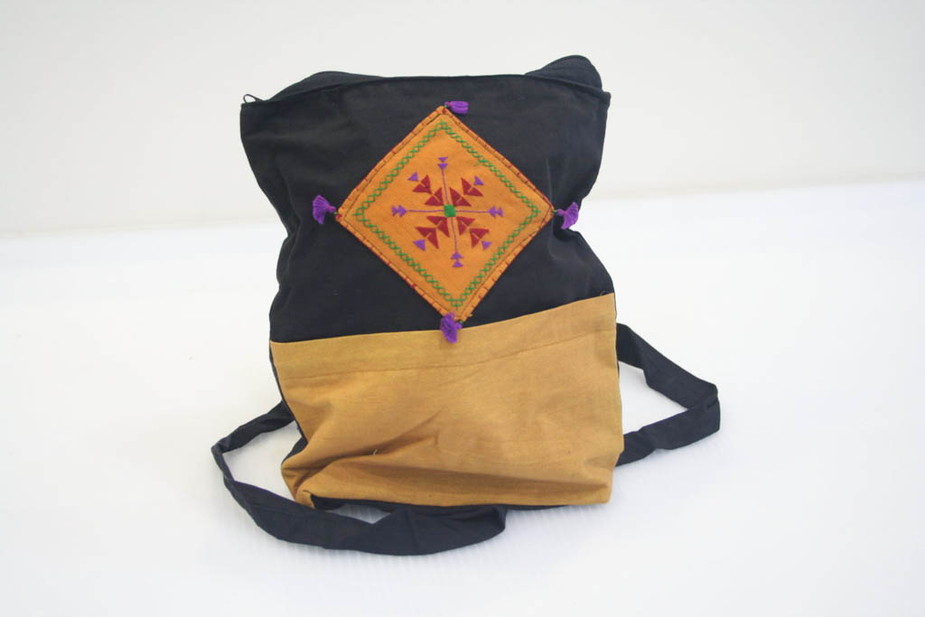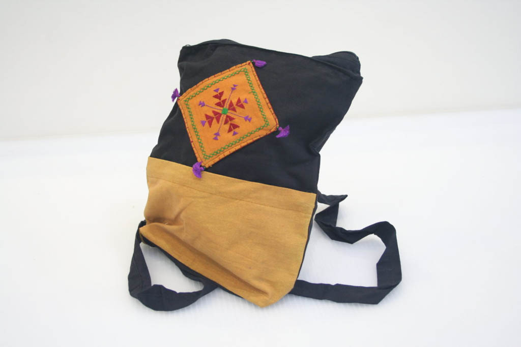 Pequeña mochila entera en algodón con figura geométrica bordada en el