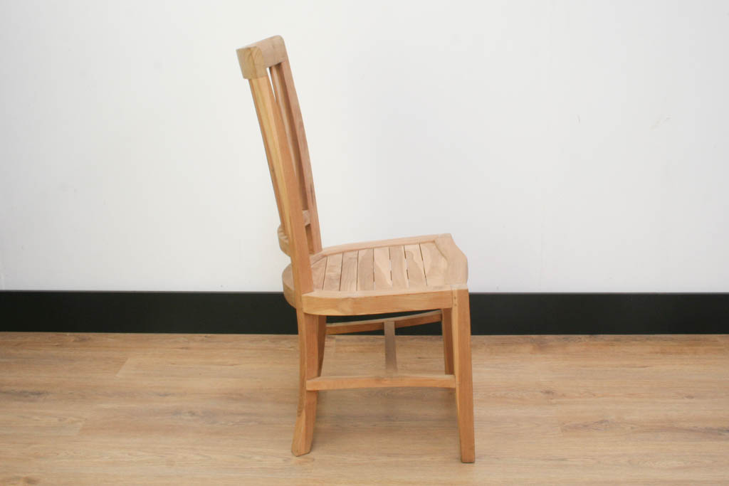 Silla de teca de diseño sencillo en color natural. No sabemos porqué, pero esta silla nos pedía a gritos quedarse en color natural. Obedecimos. Si te gusta la teca en color natural, esta puede ser tu silla.