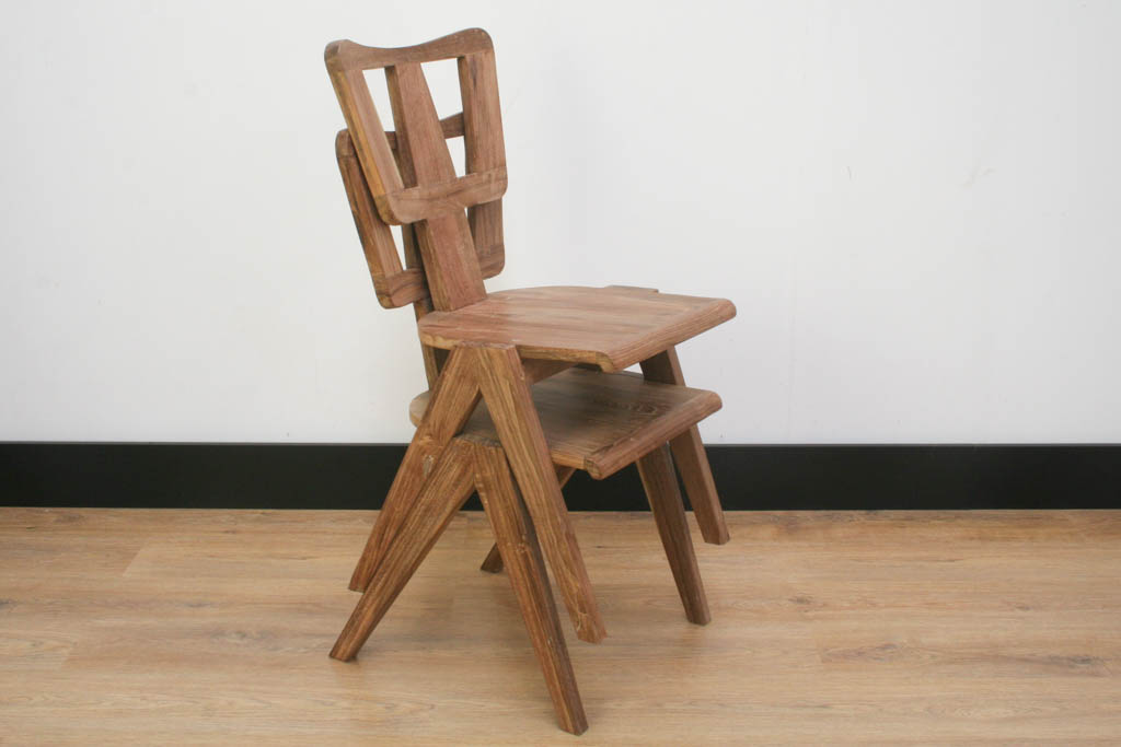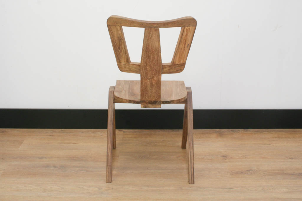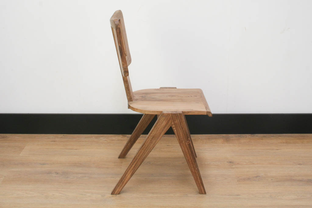 Silla de teca antigua, y como todos los muebles antiguos, especial y únicos. Se nota que la teca es antigua y que las sillas han sido usadas por su color. Están en su color natural, pulidas por el uso y tan solo protegidas con una ligera capa de parafina para que sean más agradables al tacto y mantengan ese brillo característico.