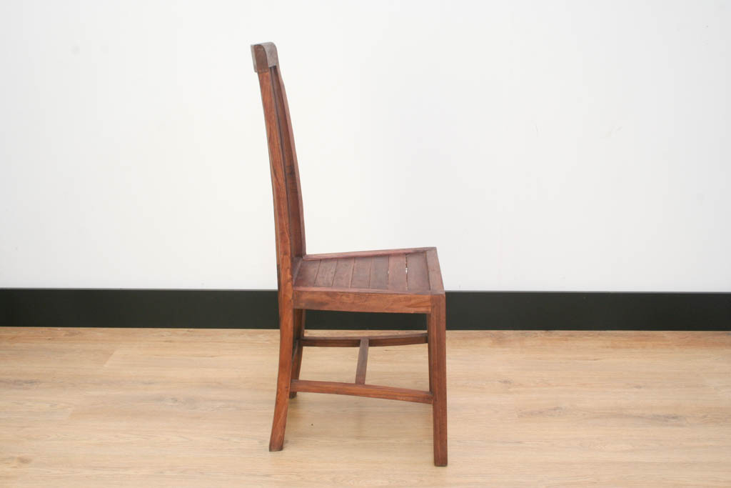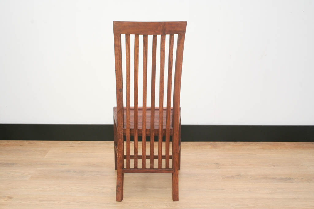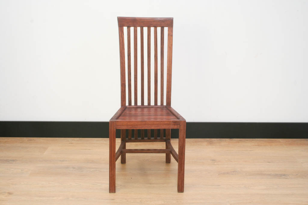 debido en parte a los barrotes verticales del respaldo. Las líneas verticales