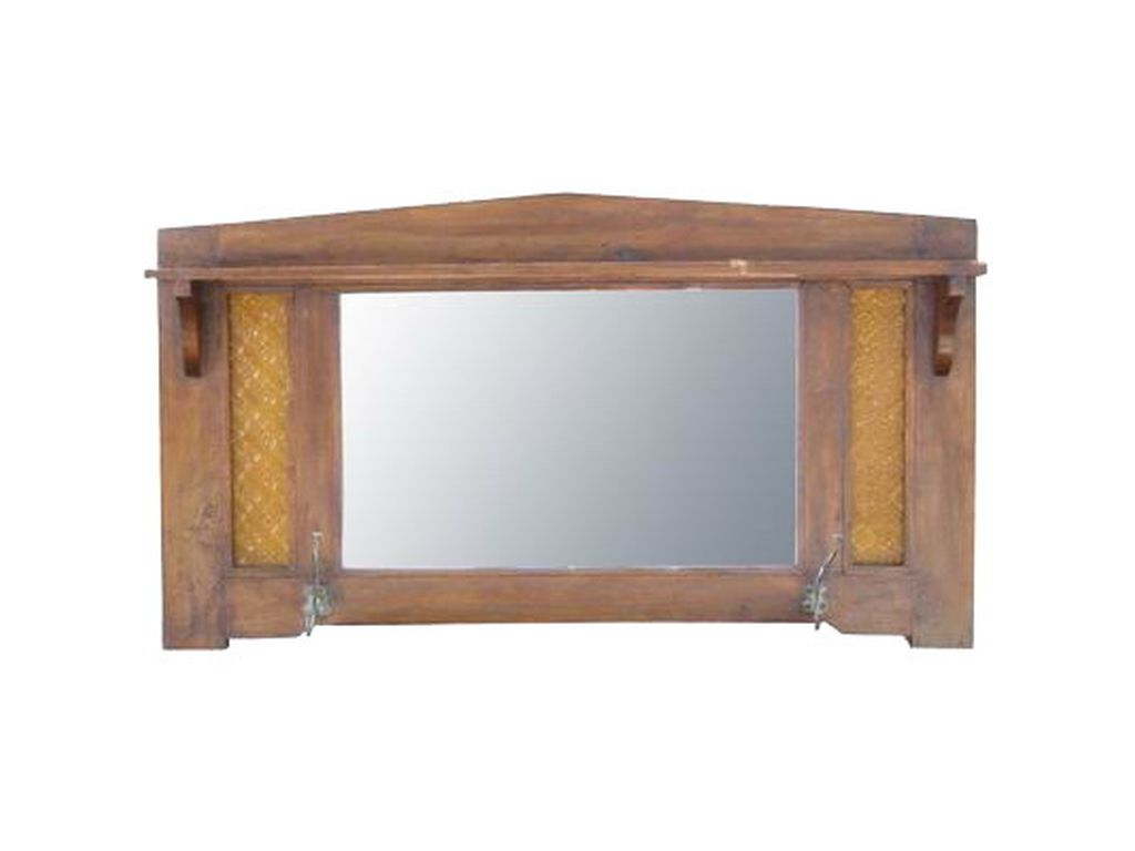 Pieza muy peculiar esta vitrina antigua decapada. La hacen especial sus cristales de distintos tamaños, de distintas formas y sus 3 colores en tonos apastelados.